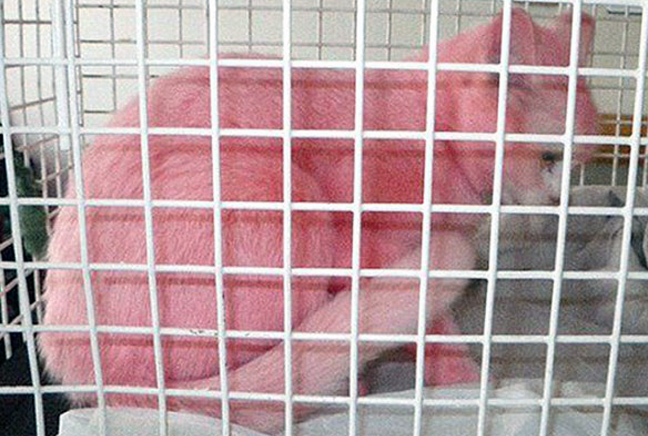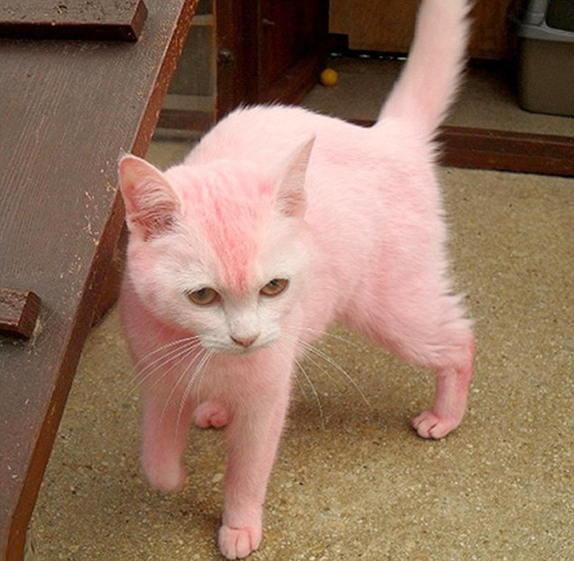 Όποιος έβαψε τη γάτα αυτό το χρώμα ή έχει για αγαπημένο του ήρωα τον ροζ πάνθηρα ή ως πρότυπό του την Πάρις Χίλτον και τη Barbie. Η συγκεκριμένη γάτα που της έχουνε δώσει το ψευδώνυμο pink βρέθηκε παρατημένη σε μία αυλή στο Τσέλσι.