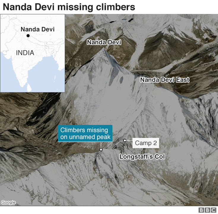 Η ομάδα επιχειρούσε να κατακτήσει τη δεύτερη ψηλότερη κορυφή του Nanda Devi όταν χάθηκε κάθε επικοινωνία, στις 26 Μαΐου.