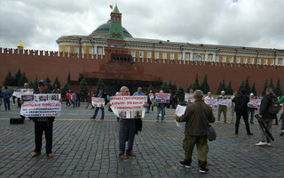 Τουλάχιστον 20- 30 άνδρες, μερικοί από τους οποίους φορούσαν ισλαμικά καπέλα και είχαν μακριές γενειάδες, συγκεντρώθηκαν το πρωί στην Κόκκινη Πλατεία, κρατώντας στα χέρια τους πανό που έγραφαν, «τα παιδιά μας δεν είναι τρομοκράτες», «να σταματήσουν οι διώξεις κατά των Τατάρων», «ο πόλεμος κατά της τρομοκρατίας στην Κριμαία είναι πόλεμος κατά των διαφωνούντων».