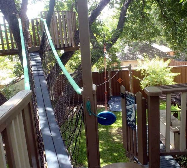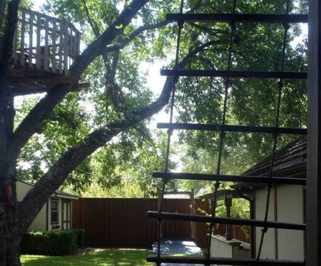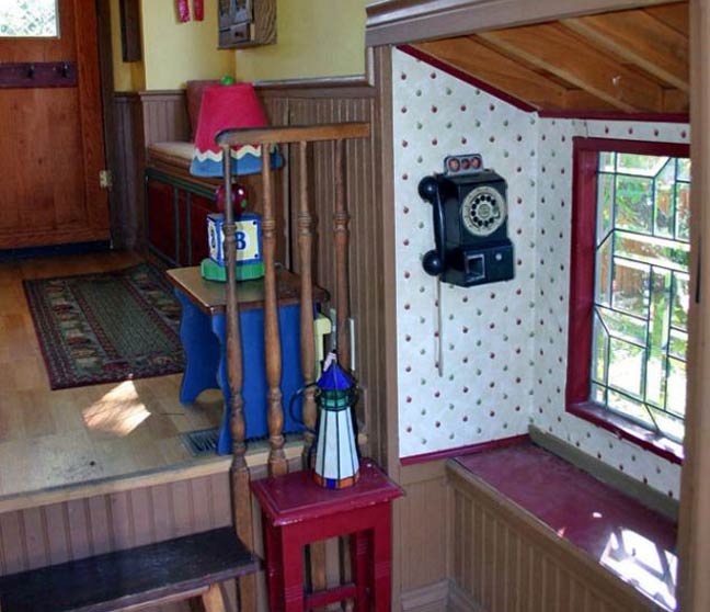 Στο δεντρόσπιτο υπάρχει κρεμαστή γέφυρα, μικρό τζάκι και φυσικά τηλέφωνο.