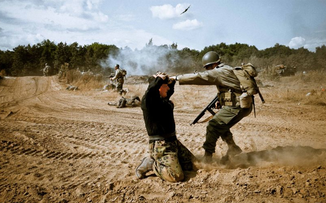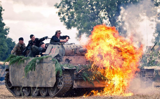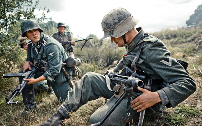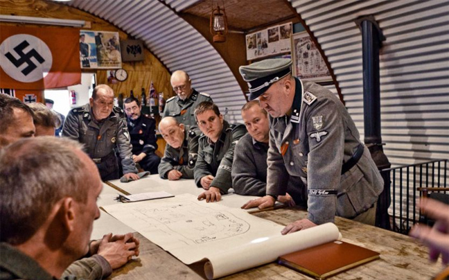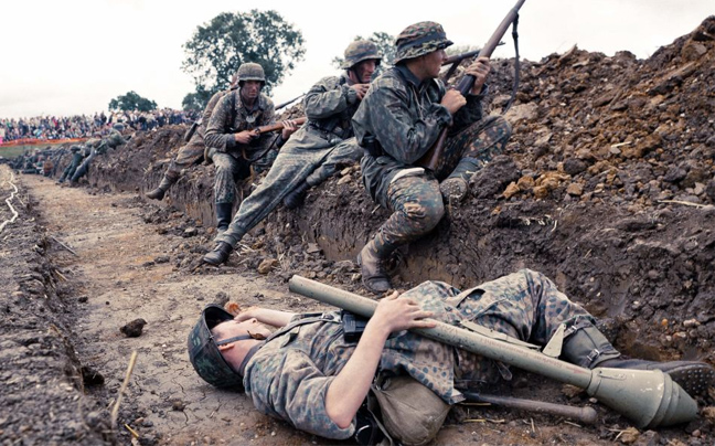 Εύκολα θα μπορούσε να μπερδέψει κανείς τις εντυπωσιακές φωτογραφίες που ακολουθούν αυθεντικές εικόνες του Β’ Παγκοσμίου Πολέμου, ωστόσο πρόκειται για τις κοπιαστικές φωτογραφίσεις του Μπρίτζενς στις εκδηλώσεις αναπαράστασης.