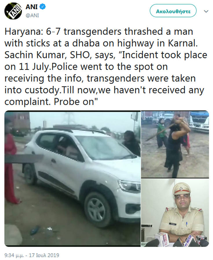 Συγκεκριμένα η ομάδα των κατά τα φαινόμενα διεμφυλικών γυναικών φαίνονται σε βίντεο να χτυπούν έναν άνδρα με ραβδιά και να πετάνε μια καρέκλα σε έναν άλλον που βρίσκεται μέσα σε αυτοκίνητο κατά τη διάρκεια τσακωμού στην Ινδία.