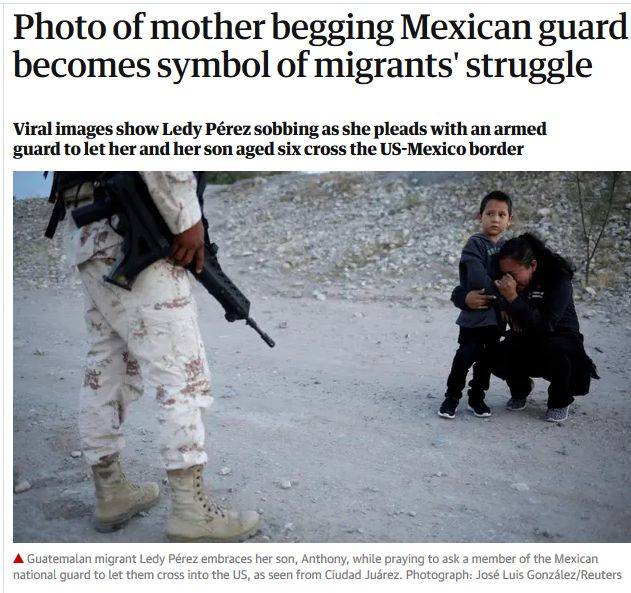 Μία μητέρα γονατισμένη και κρατώντας σφιχτά το χέρι του 6χρονου της, ικετεύει με δάκρυα στα μάτια, να της επιτρέψουν να περάσει τα σύνορα του Μεξικού με τις ΗΠΑ για να μπορέσει το παιδί της να έχει ένα καλύτερο μέλλον.