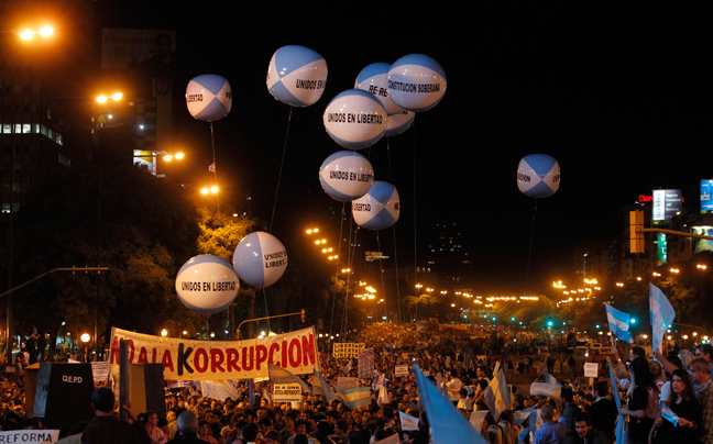 Ένα εκατομμύριο πολίτες της Αργεντινής διαδήλωσαν στους δρόμους εκφράζοντας την οργή τους κατά της προέδρου Κριστίνα Φερνάντεζ, την οποία θεωρούν υπεύθυνη για την επιδείνωση της οικονομίας.