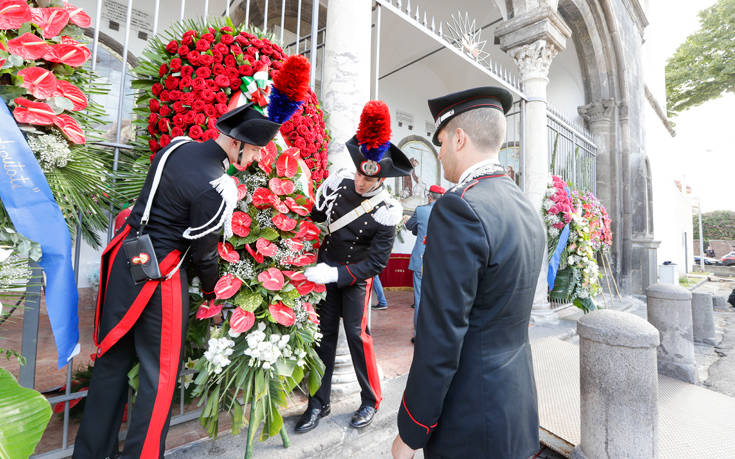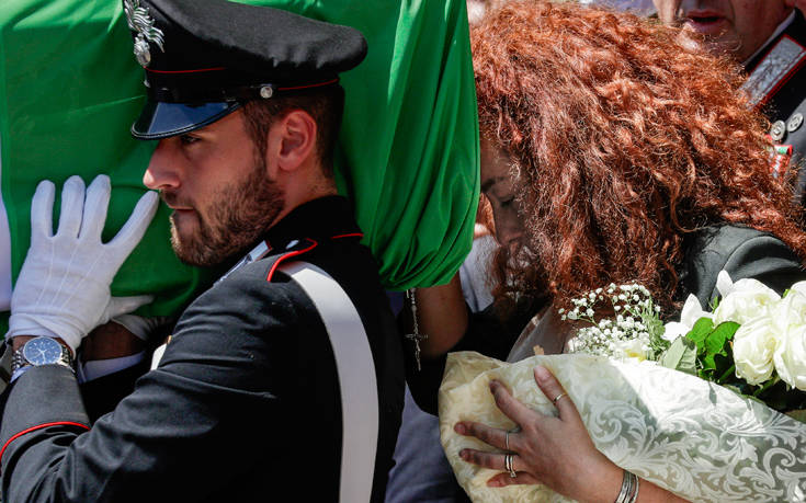 Εκατοντάδες άνθρωποι παρέστησαν σήμερα στη Σόμα Βεζουβιάνα, σε κοντινή απόσταση από τη Νάπολη, στην κηδεία του χωροφύλακα Μάριο Τσερτσιέλο Ρέγκα, ηλικίας 35 ετών, που δολοφονήθηκε τη νύχτα της Πέμπτης προς Παρασκευή από έναν νεαρό Αμερικανό τουρίστα, όπως αναφέρει το Αθηναϊκό Πρακτορείο Ειδήσεων.