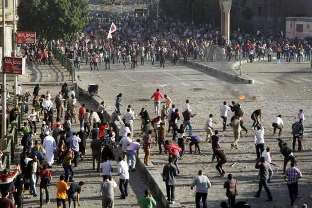 Συγκρούσεις ξέσπασαν το απόγευμα στο Κάιρο μεταξύ υποστηρικτών και αντιπάλων του ισλαμιστή προέδρου της Αιγύπτου Μοχάμεντ Μόρσι, εκτοξεύοντας πέτρες και βόμβες μολότοφ οι μεν στους δε, ενώ ακούγονταν και πυροβολισμοί, όπως μετέδωσε το πρακτορείο Reuters.