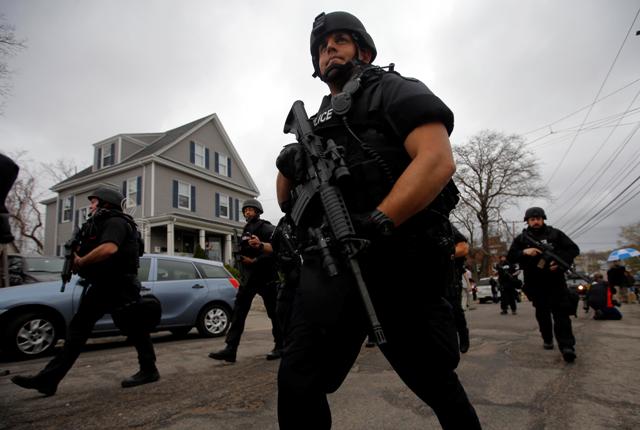 Εννέα χιλιάδες πάνοπλοι αστυνομικοί βρίσκονται στους δρόμους της Βοστόνης, η οποία μοιάζει με πόλη σε εμπόλεμη κατάσταση, με ερημωμένους τους δρόμους, καθώς η αστυνομία έχει εξαπολύσει ανθρωποκυνηγητό για τον εντοπισμό και τη σύλληψη του δεύτερου υπόπτου για τις βομβιστικές επιθέσεις στη Βοστώνη, Τζοχάρ Τσαρνάεφ.