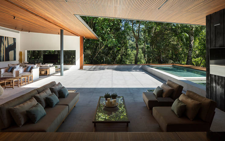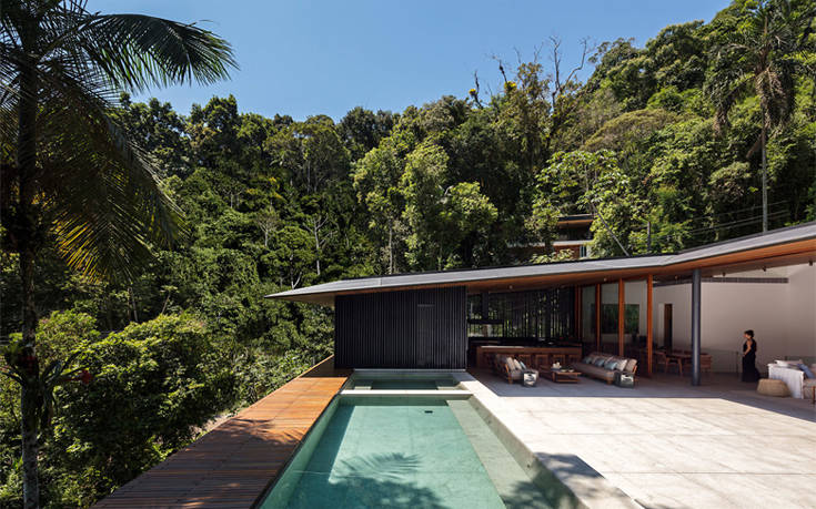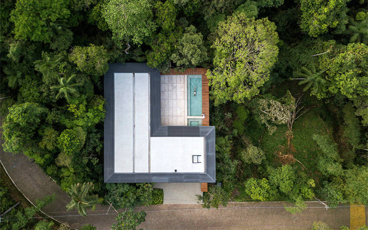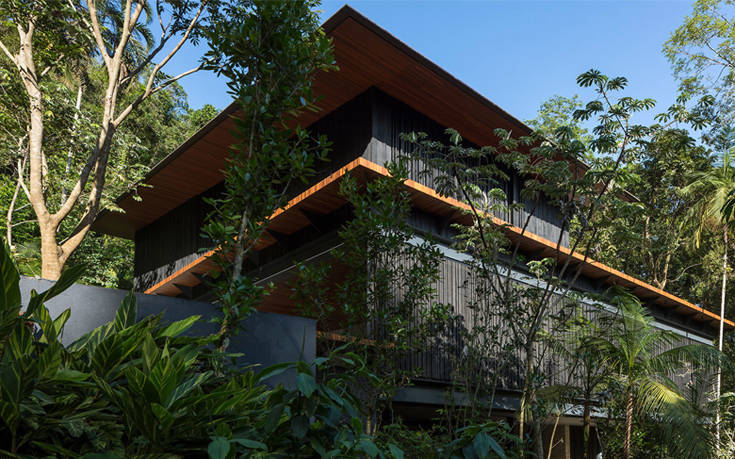 Εγκατεστημένο στις ακτές του Σάο Πάολο, το MH House συνομιλεί ευθέως με το πυκνό δάσος που το περιβάλλει με τη ρευστή του φόρμα και την παιχνιδιάρικη αλληλεπίδραση με το περιβάλλον.