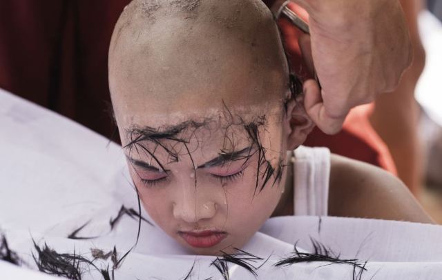 Ο Βουδισμός Τεραβάντα, που εξασκείται σε χώρες όπως είναι η Ταϊλάνδη και η Σρι Λάνκα, περιλαμβάνει ένα αυστηρά καθορισμένο τελετουργικό για τη χειροτόνηση των παιδιών. Ο φωτογράφος Vincezo Floramo φωτογράφησε τη διαδικασία αυτή για τα δύο παιδιά, κατά τη διάρκεια των εορτασμών Ta Pwe, οπότε και τουλάχιστον 40 μικροί Ταϊλανδοί ξυρίζουν τα μαλλιά τους στην πανσέληνο του Μαρτίου.