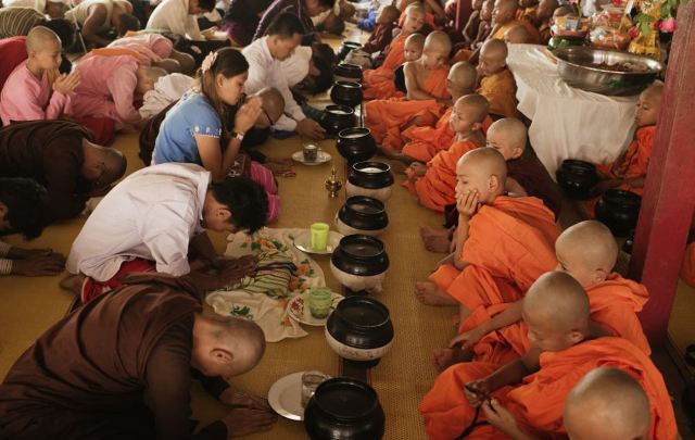 Αφού βρεθούν στο μοναστήρι, οι μοναχοί τους ξυρίζουν τα μαλλιά και φορούν λευκές ρόμπες. Η τελετή ολοκληρώνεται με τους γονείς να πετάνε κέρματα και γλυκίσματα στον αέρα σαν προσφορά προς τους συμμετέχοντες.