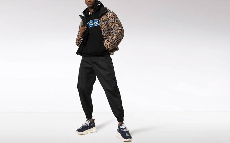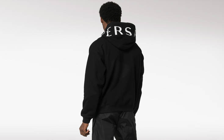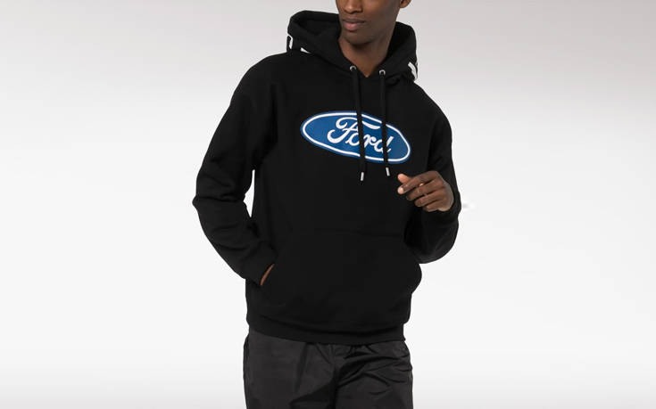Αυτή η έξαψη απαθανατίζεται και στο εν λόγω φούτερ με τα δυο μεγάλα λογότυπα, της Ford στο στέρνο και της Versace στο πίσω μέρος, στην κουκούλα.