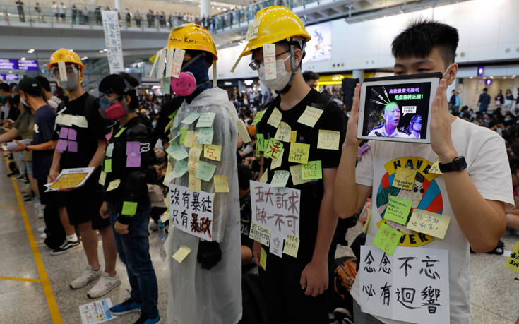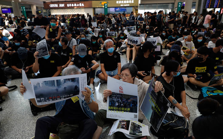 Οι διαδηλωτές πάντως λένε πως σχεδιάζουν να μείνουν στο αεροδρόμιο του Χονγκ Κονγκ όλο το Σαββατοκύριακο.