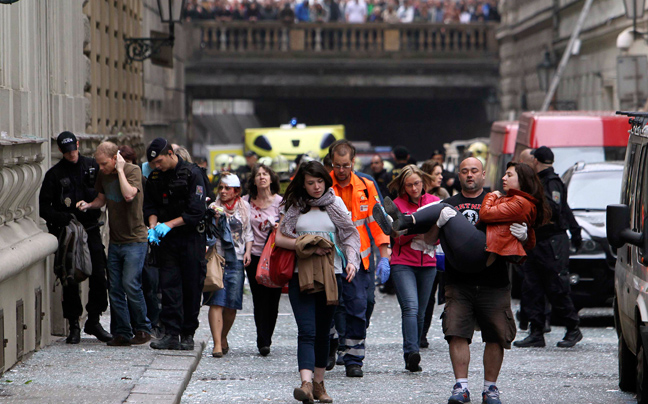 Από την έκρηξη έχουν σπάσει τζάμια κτιρίων, ανάμεσά τους και το Εθνικό Θέατρο της χώρας, που βρίσκονται απόσταση εκατοντάδων μέτρων από το σημείο της έκρηξης.