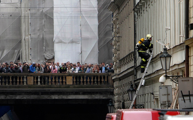 Αυτόπτες μάρτυρες αναφέρουν ότι ο δρόμος μπροστά στο κτίριο έχει γεμίσει συντρίμμια.