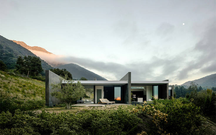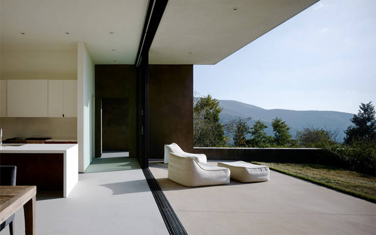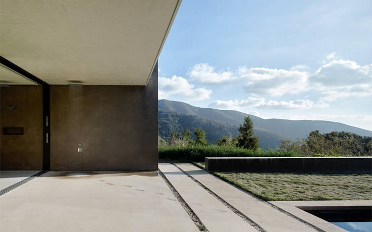 Η 370 τ.μ. κατοικία μοιάζει εγκλωβισμένη στο τοπίο που την υποβαστάζει, μόνο που καταφέρνει να περιχαρακώσει τη μοναδικότητά της χωρίς υπερβολές και παράταιρα στοιχεία.