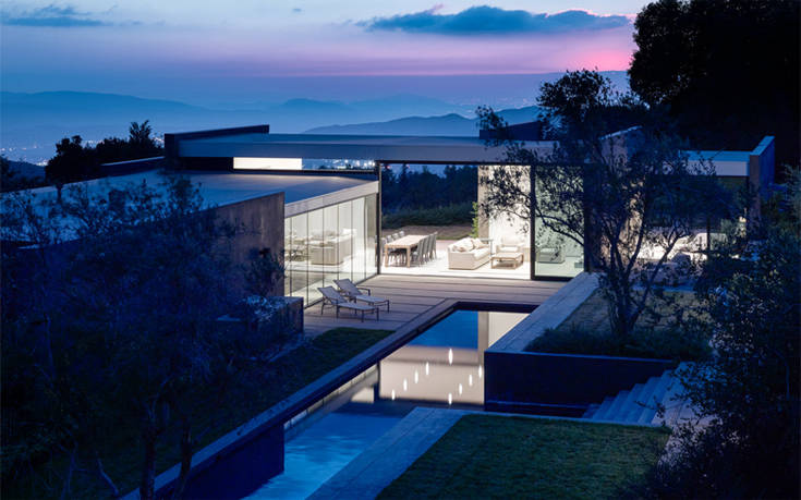 Σε έναν λόφο της νότιας Καλιφόρνια υπάρχει ένα μοντέρνο σπίτι που επιβλέπει ένα προστατευόμενο δάσος του Σαν Μπερναρντίνο.