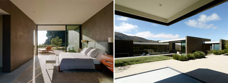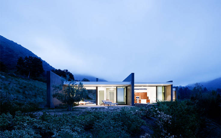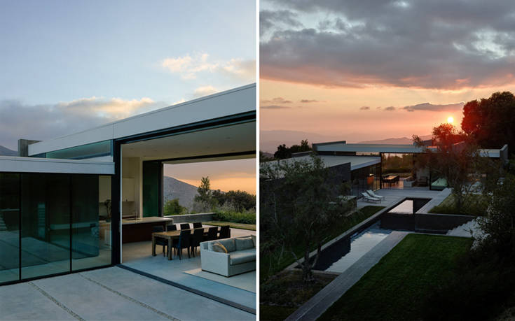 Όλοι αυτοί οι τσιμεντένιοι όγκοι συνδέονται και χωρίζονται ταυτοχρόνως από μεγάλα τζαμένια ανοίγματα, τα οποία προσφέρουν μαγευτική θέα στο ηλιοβασίλεμα αλλά και σε όλη την κοιλάδα στα δυτικά.