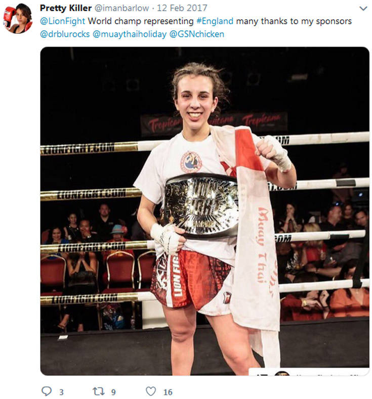 Δυο ληστές επιτέθηκαν στη Μαγιόρκα σε έναν βρετανό τουρίστα και την οικογένειά του, χωρίς να γνωρίζουν προφανώς πως εκεί δίπλα βρισκόταν η 26χρονη Iman Barlow, παγκόσμια πρωταθλήτρια της λεγόμενης ταϊλανδέζικης πυγμαχίας.
