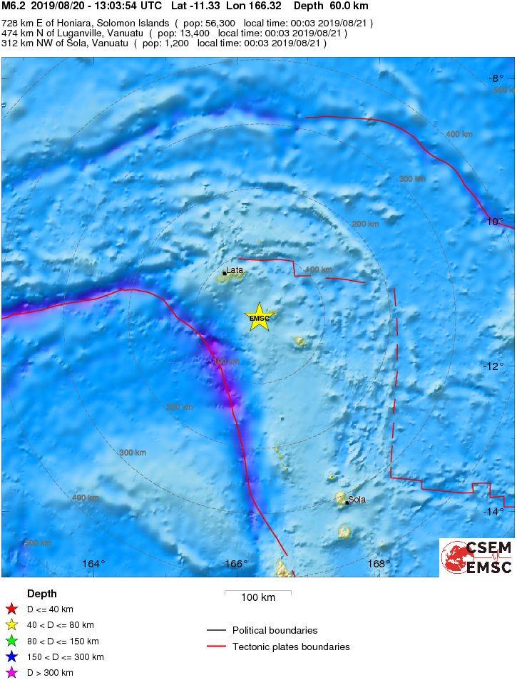 Προς το παρόν δεν υπάρχουν πληροφορίες για θύματα ή ζημιές από τον σεισμό που είχε εστιακό βάθος 17 χλμ. και σημειώθηκε περίπου 475 χλμ. βόρεια του νησιού Σάντο.