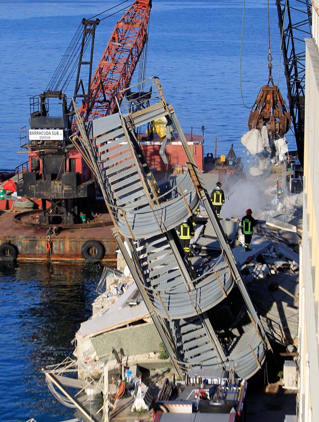 Αγνοούμενοι μπορεί να βρίσκονται στο εσωτερικό του ασανσέρ που, κατά την πρόσκρουση, έπεσε στη θάλασσα , ακριβώς μπροστά στο μόλο. Οι δύτες συνεχίζουν, αδιάκοπα τις προσπάθειές τους, οι οποίες ξεκίνησαν χθες το βράδυ, λίγο μετά τις δώδεκα τοπική ώρα.