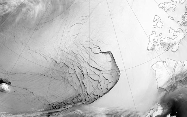 Δε χρειάζεται ο ίδιος να ανησυχεί για πιθανή απαγωγή· οι πάγοι που λιώνουν στο Βόρειο Πόλο ίσως του δημιουργήσουν μεγαλύτερα προβλήματα. Από τον Ιανουάριο έως το Μάρτιο του 2013, σχηματίστηκε μια ρωγμή (φωτ.) στον πάγο της αρκτικής θάλασσας – ο οποίος γίνεται όλο και πιο λεπτός με το πέρασμα του χρόνου. Στις 15 Μαρτίου η ρωγμή έφτασε στο μέγιστό της μήκος.