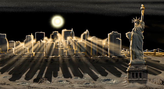 Ας κάνουμε ένα ταξίδι στο ηλιακό μας σύστημα παίρνοντας στις αποσκευές μας τη Νέα Υόρκη: πώς λέτε να αλληλεπιδρούν οι άλλοι πλανήτες με το «δάσος» των ουρανοξυστών της κορυφαίας μητρόπολης;