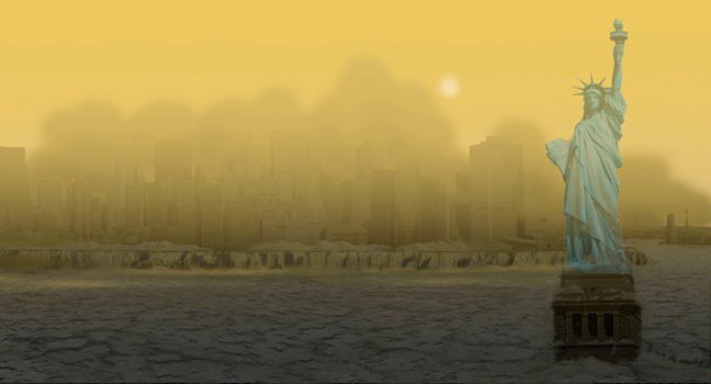 Ο Κόκκινος Πλανήτης έχει μια ψυχρή και λεπτή ατμόσφαιρα από διοξείδιο του άνθρακα, 100 φορές περίπου λεπτότερη από τη γήινη. Η οξειδωτική χημεία του Άρη σημαίνει απλά-απλά ότι το Άγαλμα της Ελευθερίας θα σκούριαζε πολύ γρήγορα, ενώ οι συχνότατες θύελλες σκόνης που μαστίζουν τον Άρη θα κάλυπταν την πόλη κάνοντάς τη έρημο…