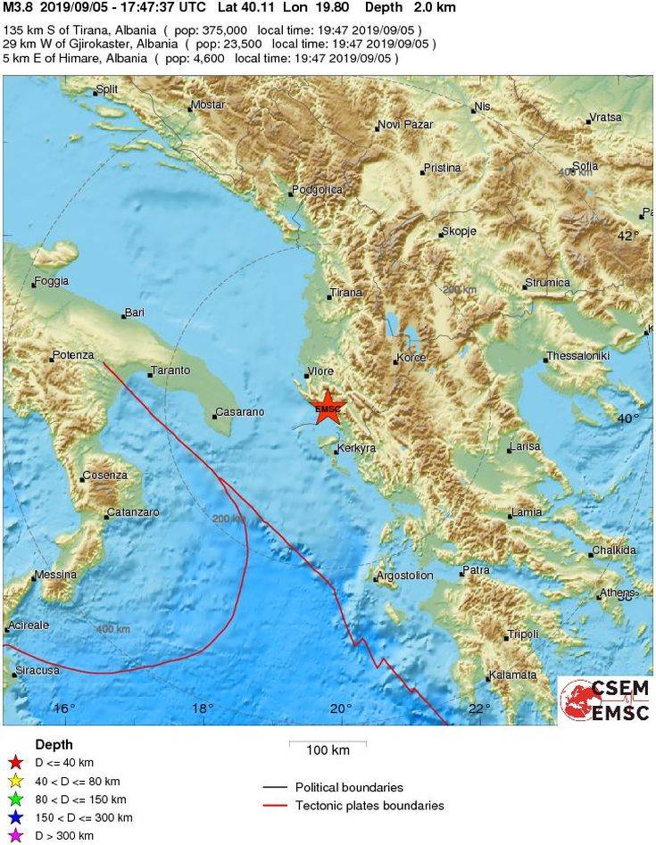 Σεισμός ταρακούνησε την Χειμάρρα πριν από λίγο καθώς το επίκεντρο εντοπίστηκε στα 5 χλμ. από την πόλη της Αλβανίας και στα 132 χλμ. από τα Τίρανα.