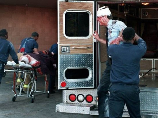 Ενώ οι άλλοι τρεις πάλευαν στους χώρους του αεροπλάνου, ο Τάκερ έκανε ακόμη περισσότερους ελιγμούς για να αποφύγει τη συνέχιση των βιαιοπραγιών. Έκανε κατάδυση με ταχύτητα άνω των 700 χιλιομέτρων την ώρα – ταχύτερα από οποιοδήποτε DC10. Αυτό δεν έγινε εσκεμμένα· οι κρανιακές κακώσεις του Τάκερ είχαν αχρηστεύσει το δεξί του χέρι, το οποίο ήλεγχε την ταχύτητα. Κατάφερε να σταματήσει την κατάδυση. Το αεροδρόμιο του Μέμφις, παράλληλα, είχε αδειάσει όλους τους διαδρόμους για την έκτακτη προσγείωση, αν και οι υπάλληλοι του αεροδρομίου δε γνώριζαν τι συνέβαινε μέσα στο αεροπλάνο. Ο Τάκερ προσγείωσε το αεροπλάνο, ενώ ο Σάντερς και ο Πίτερσον κρατούσαν τον Καλογουέι ακίνητο στο πάτωμα. Ο Καλογουέι καταδικάστηκε σε ισόβια κάθειρξη για αεροπειρατεία και απόπειρα δολοφονίας, ενώ τα μέλη του πληρώματος υπέστησαν βαριά τραύματα που τους άλλαξαν τη ζωή και πλέον δεν μπορούν να πιλοτάρουν αεροπλάνο. Στην εικόνα βλέπουμε τον Σάντερς να δέχεται ιατρική βοήθεια.