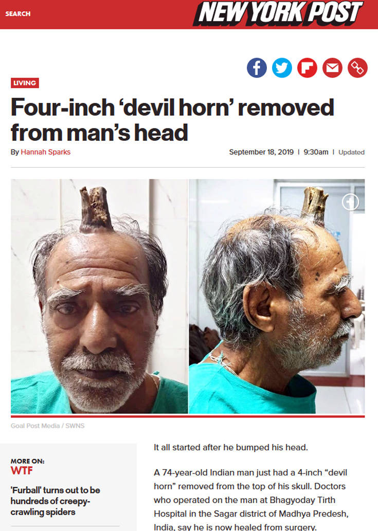 Όλα ξεκίνησαν έπειτα από ένα χτύπημα στο κεφάλι. Ο 74χρονος Shyam Lal Yadav από την Ινδία εμφάνισε στο πάνω μέρος του κεφαλιού του ένα εξόγκωμα σαν κέρατο.