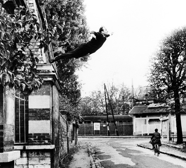 Ήταν στη δεκαετία του 1960 όταν ο περίφημος εννοιολογικός καλλιτέχνης Yves Klein βάλθηκε να αποδείξει το παιδικό όνειρό ότι ο άνθρωπος μπορεί να πετάξει. Ανέβηκε λοιπόν στον δεύτερο όροφο της γκαλερί και πήδηξε έξω με το κεφάλι, για να αποδείξει ότι το ταξίδι στη σελήνη χωρίς μηχανικά μέσα ήταν δυνατό (αντί να συντριβεί στο πεζοδρόμιο δηλαδή θα αψηφούσε τη βαρύτητα και θα κατευθυνόταν στο διάστημα)! Και να ασκήσει βέβαια κριτική στη NASA για τις προσπάθειές της να κατακτήσει το φεγγάρι. Από κάτω τον περίμεναν φυσικά άνθρωποι με σωστικό σεντόνι, το οποίο αφαιρέθηκε «χειρουργικά» με φωτομοντάζ από την εικόνα που σόκαρε το παγκόσμιο κοινό…