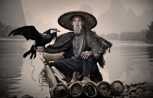 Τη συγκεκριμένη φωτογραφία τράβηξε ο Andrey Pavlov στις όχθες του ποταμού Li κοντά στο ψαροχώρι Xingping στην επαρχία Guangxi της Κίνας. Ο κ. Huang και τα τέσσερα αδέρφια είναι από τους τελευταίους ψαράδες που χρησιμοποιούν την παραδοσιακή τεχνική ψαρέματος με εκπαιδευμένους κορμοράνους.