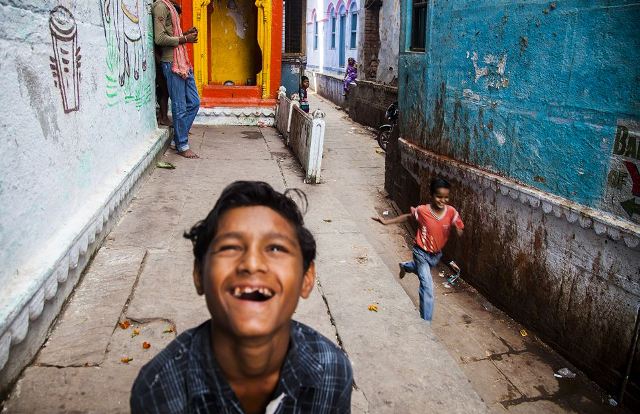 Ο Στυλιανός Παπαρδέλας φωτογράφησε παιδιά να παίζουν στους δρόμους του Varanasi της Ινδίας. Μια έκρηξη χρωμάτων, χαμόγελων και ενέργειας.