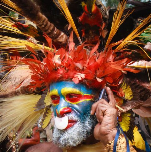 Η παράδοση συναντά την τεχνολογία στη φωτογραφία του Chet Stein. Τοποθεσία: Mt. Hagan στην Παπούα Νέα Γουινέα.