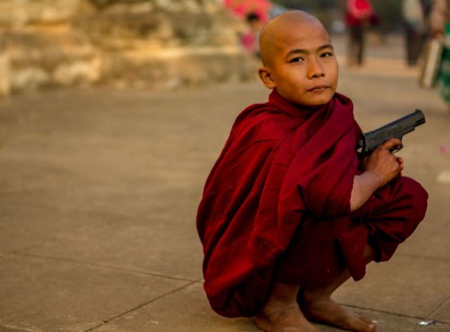 Στο ετήσιο φεστιβάλ συγκομιδής στην Bagan της Μιανμάρ βρέθηκε η Joyce Le Mesurier, όπου χιλιάδες μοναχοί απ’ ολόκληρη τη χώρα έρχονται για ελεημοσύνη. Επισκεπτόμενη τους ναούς συνάντησε ένα μικρό αγόρι – μοναχό να παίζει με ένα όπλο – παιχνίδι.