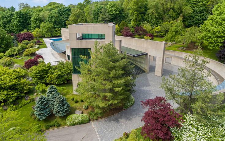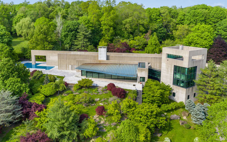 Το σπίτι χτίστηκε το 1990 για τη χήρα του κροίσου της κτηματομεσιτικής Sylvan Lawrence και αποτελείται από γυμνό μπετό και τζαμαρίες.