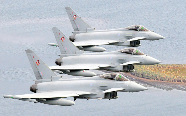 Μπορούν να πιάσουν ταχύτητες μέχρι 2.100 χλμ/ώρα και διαθέτουν τα παντοδύναμα πολυβόλα Mauser 27mm. Ο λόγος για τα Eurofighter Typhoon, ή αλλιώς τα βρετανικά top guns.