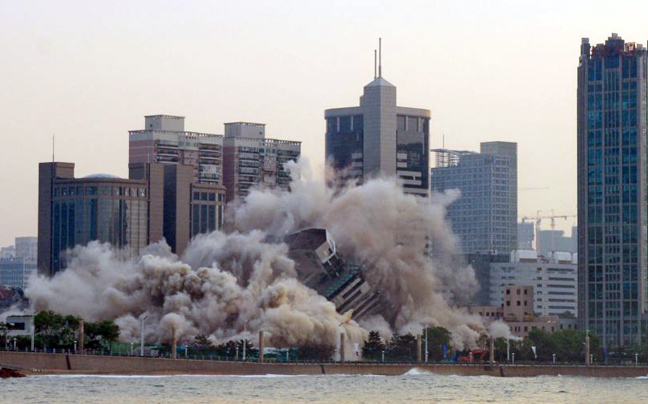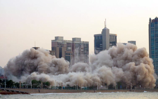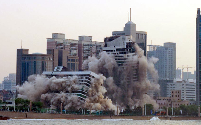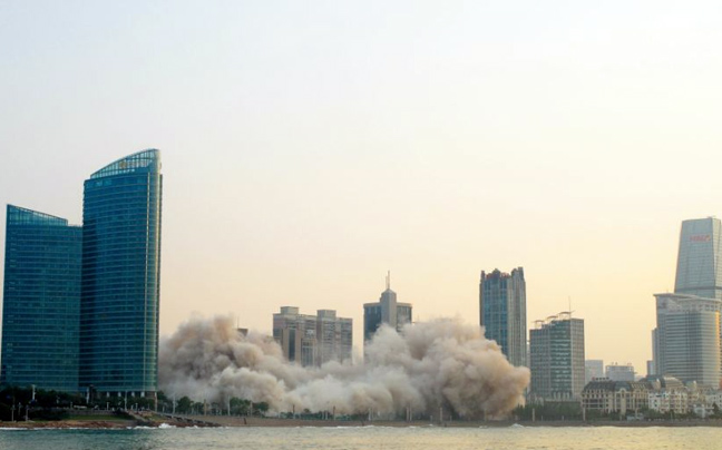 Το ξενοδοχείο γκρεμίστηκε σήμερα το πρωί με ελεγχόμενη έκρηξη ούτως ώστε να μην προκληθούν ζημιές σε γειτονικά κτήρια της πόλης Qingdao.