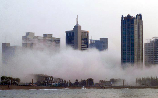 «Έσκιζε» τον ουρανό της Κίνας για 27 χρόνια. Χρειάστηκε όμως μόλις λίγα δευτερόλεπτα το Haitian Hotel για να γίνει… συντρίμμια. Το πεντάστερο ξενοδοχείο με τους δύο πύργους ήταν ένα από τα παλαιότερα στην επαρχία Shandong της Κίνας και κρίθηκε πως ήταν καιρός να δώσει τη θέση σου σε μία νεότερη κατασκευή.