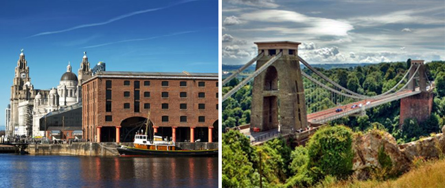 Albert Docks στο Λίβερπουλ / Clifton Suspension Bridge στο Μπρίστολ