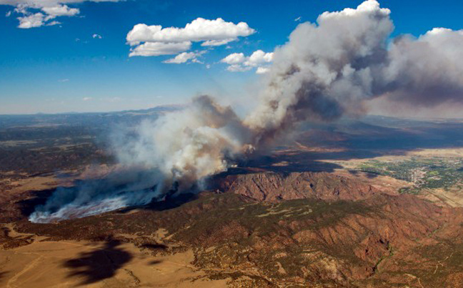 Η δεύτερη φωτιά, στο Royal Gorge, καίει από την άλλη πλευρά του Colorado Springs, απειλώντας τη γέφυρα Royal Gorge Suspension Bridge.