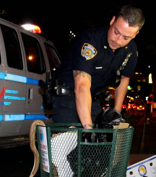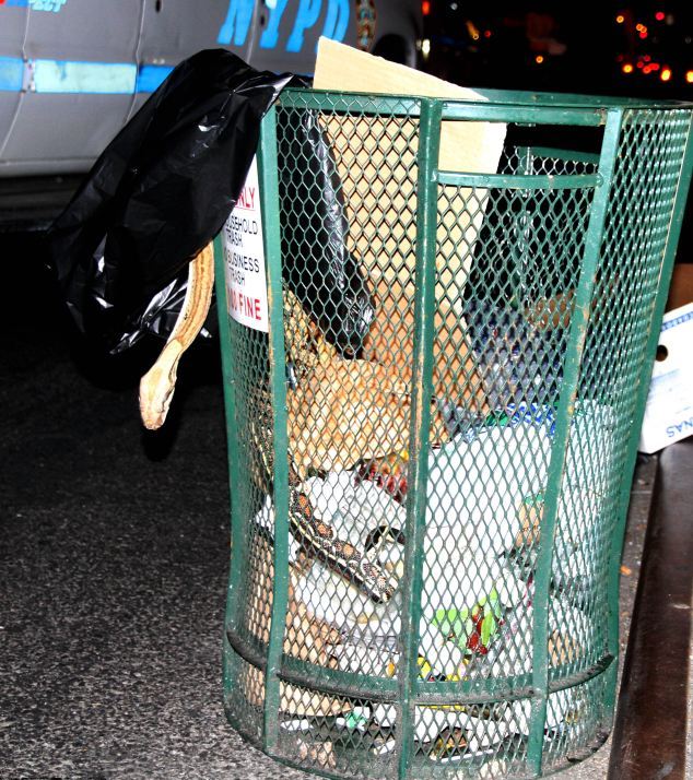 Έντρομοι οι πεζοί στην 42ο οδό είδαν να ξεπροβάλλει μέσα από ένα κάδο σκουπιδιών στο πεζοδρόμιο ένα… φίδι!