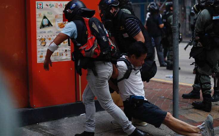 Διαδηλωτές με μολότοφ έδωσαν σκληρές μάχες με την αστυνομία σε πολλές συνοικίες του Χονγκ Κονγκ.