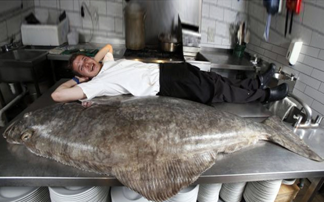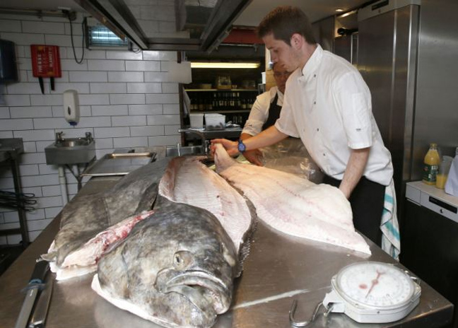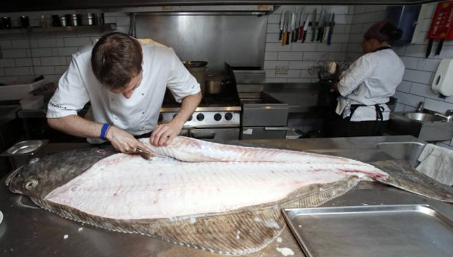 Μία ιππόγλωσσα που ζυγίζει 70 κιλά (τρεις φορές περισσότερο από το κανονικό) και είναι σε μήκος μεγαλύτερη από τον σεφ του εστιατορίου Crabshakk στη Γλασκώβη, ψάρεψαν στην ακτή Shetland!