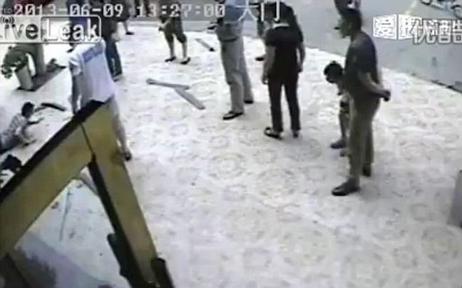 Με την πρώτη ματιά δεν συμβαίνει κάτι ανησυχητικό. Η κάμερα του ξενοδοχείου δείχνει το πλάνο ενός άδειου πεζοδρομίου. Μέσα σε κλάσματα του δευτερολέπτου το πλάνο περιλαμβάνει και έναν άνδρα που έχει πέσει από τον πέμπτο όροφο!