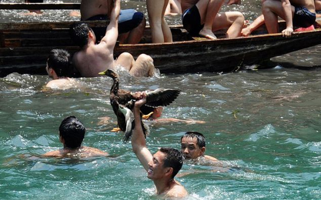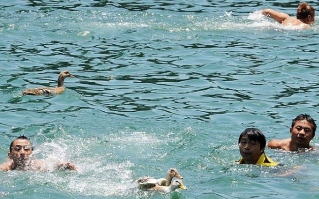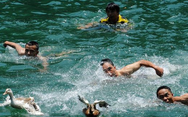 Ένας διαγωνισμός που ξεσήκωσε θύελλα αντιδράσεων διοργανώθηκε στην πόλη Fenghuang στην Κίνα. Κολυμβητές συναγωνίστηκαν στο ποιος θα κολυμπήσει πιο γρήγορα για να πιάσουν μία πάπια και να τη φάνε!