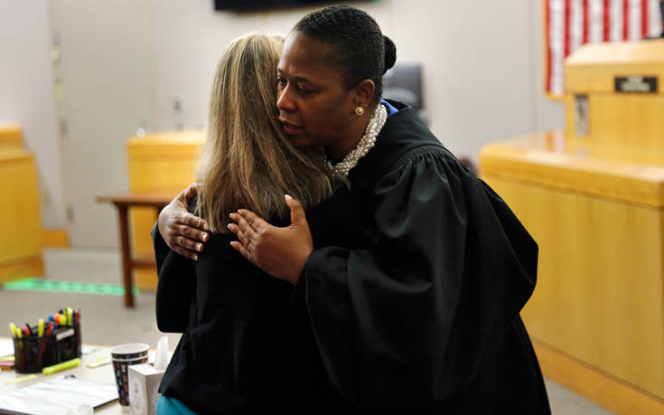 Στο άκουσμα της ποινής, η πρώην αστυνομικός ξέσπασε σε λυγμούς. Αυτό που θα ακολουθούσε, όμως, ούτε που θα μπορούσε να το είχε φανταστεί. Ο αδερφός του θύματος σηκώθηκε όρθιος και περπάτησε προς το μέρος της γυναίκας, αιφνιδιάζοντας τους πάντες.