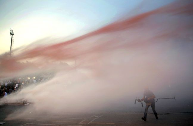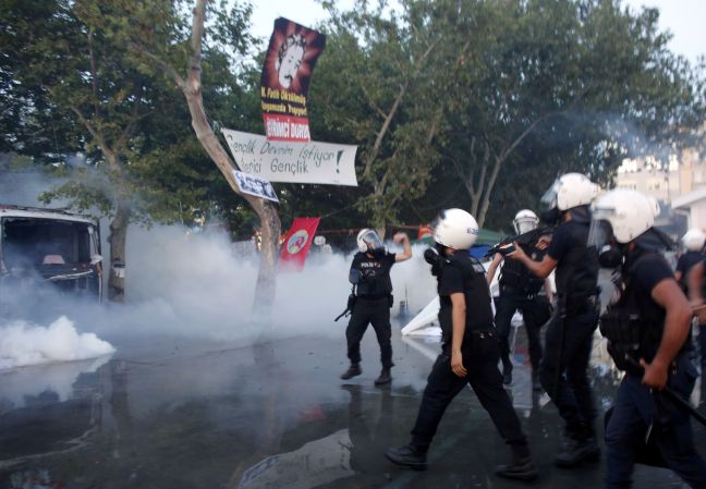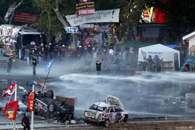 Με αντλίες νερού και χημικά προσπαθούν να διαλύσουν το πλήθος των διαδηλωτών στην πλατεία Ταξίμ και το πάρκο Γκεζί στην Τουρκία οι δυνάμεις ασφαλείας.