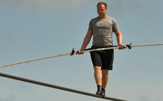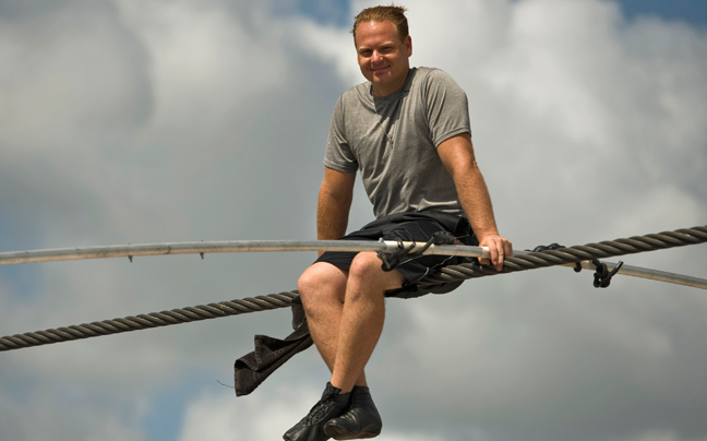 Για τον Nik Wallenda δεν είναι παρά η ώρα της προπόνησης. Αυτοσυγκεντρώνεται και κάνει κάτι που πολλοί από εμάς θα τρέμαμε: περπατά «στον αέρα» πάνω σε ένα σχοινί μήκους 366 μέτρων, στη Sarasota της Φλόριντα, στις ΗΠΑ.