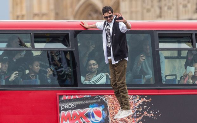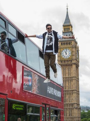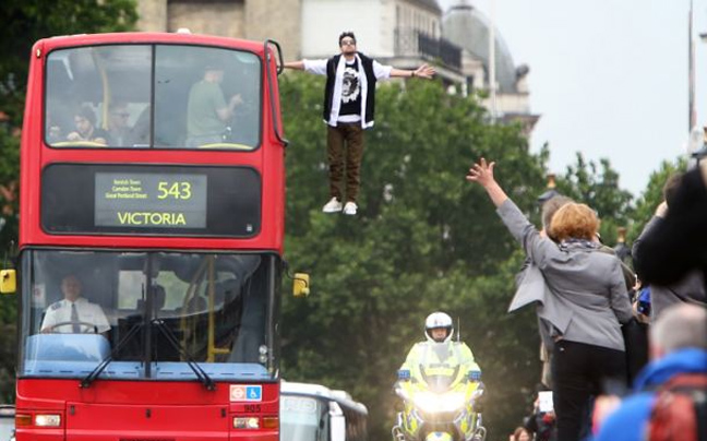 Ο λόγος για τον 30χρονο μάγο Dynamo, που το πραγματικό του όνομα είναι Steven Frayne, που φαίνεται να απόλαυσε μια διαδρομή με ένα διώροφο λεωφορείο ύψους πέντε μέτρων, στο οποίο στερεώθηκε ακουμπώντας απλά τη μία του παλάμη!